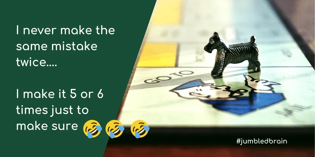 My Monopoly example luckily means no harm was done. And actually board games are great for training when you have a brain injury, as Alison explains in The Ultimate Guide to board games for brain training. But there could be other things I’m doing everyday without realising. The only reason that I knew what I’d done during that game was because everyone else witnessed it and was able to correct it. So I would advise that when you are undertaking important tasks and decisions, make sure you have someone you trust with you to help point out the obvious mistakes if they happen.