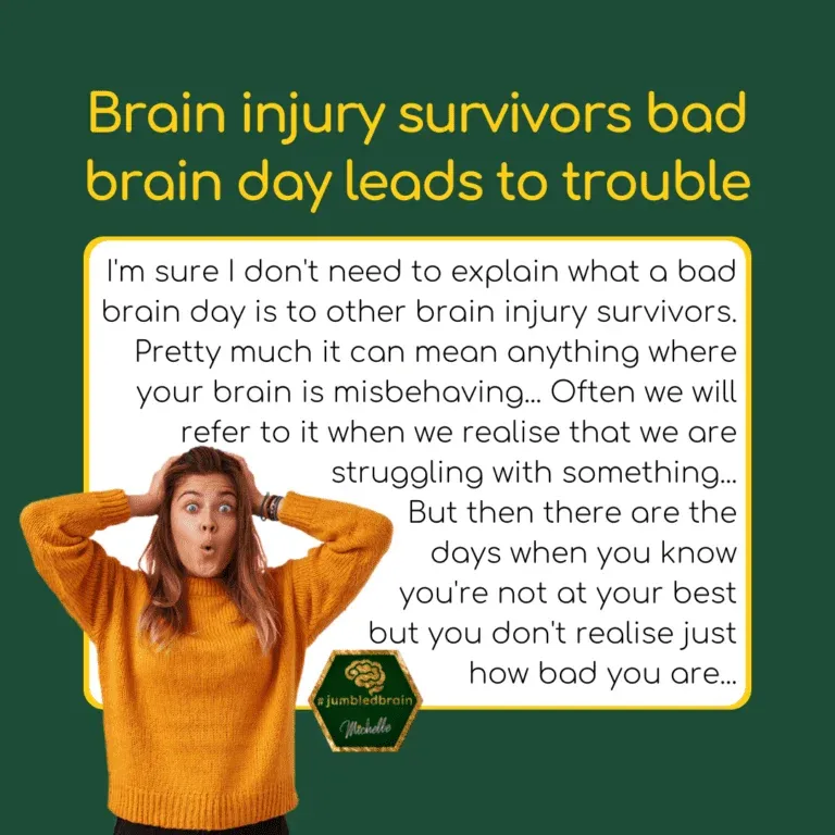 I’m sure I don’t need to explain what a bad brain day is to other brain injury survivors. Pretty much it can mean anything where your brain is misbehaving and distorting your thinking process. Often we will refer to it when we realise that we are struggling with something such as reading, problem solving, remembering details, or something like that. These can be frustrating and distressing. But then there are the days when you know you’re not at your best but you don’t realise just how bad you are. One of which I was reminded of the other day….